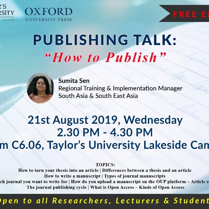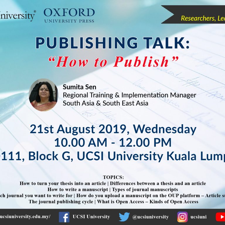 22 August 2019 : Publishing Talk – "How to Publish" @UTM KL
