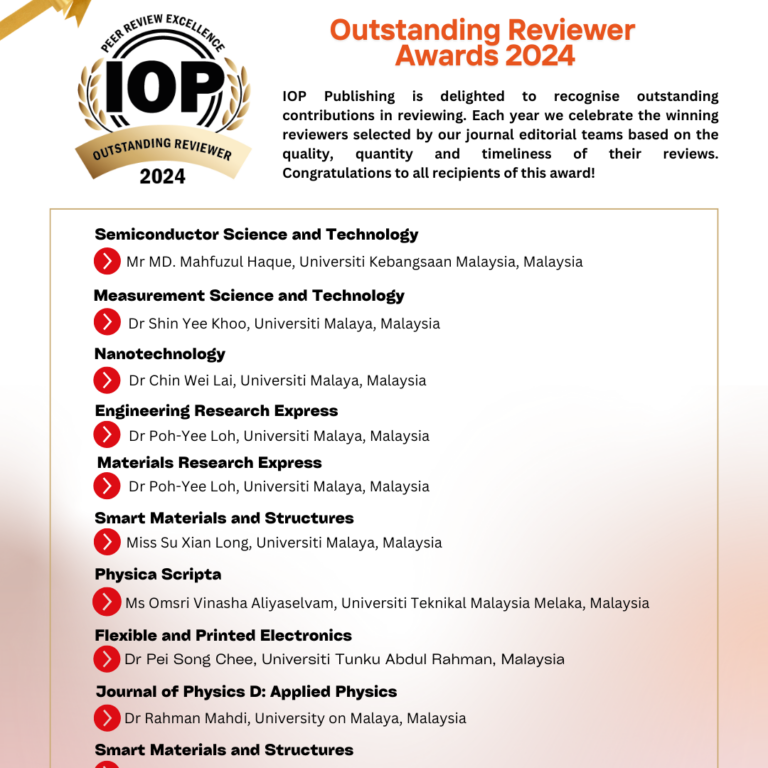 Congratulations to All Recipients of the IOP Publishing Outstanding Reviewer Awards Congratulations to the recipients of the IOP Publishing Outstanding Reviewer Awards. Your dedication and expertise are vital to advancing…
